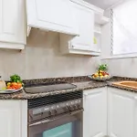 - ❓Existe uma cozinha disponível neste apartamento para uso dos hóspedes?Sim, este apartamento está equipado com cozinha totalmente equipada e oferece refrigerador, forno e artigos de vidro.